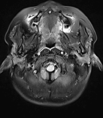 完善高分辨MR检查:左侧大脑中动脉M1局部偏心性强化。