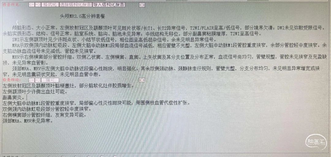 发病第三日完善了颅脑MR检查:左侧大脑半球脑梗死(病灶新旧不一) 。