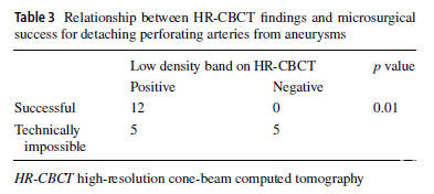 表3. 动脉瘤穿支动脉分离的HR-CBCT表现与显微手术成功率的关系
