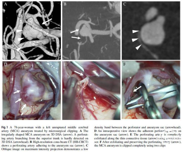 即使随着颅内动脉瘤血管内治疗的出现,显微外科夹闭(microsurgical clipping)仍在治疗大脑中动脉(MCA)动脉瘤中发挥着重要作用。保证未破裂颅内动脉瘤(unruptured intracranial aneurysms,UIAs)周围穿支动脉通畅对于最小化每种治疗方案的手术风险至关重要。因此,研究者在此研究了高分辨率锥形束计算机断层成像(high-resolution cone-beam computed tomography,HR-CBCT)上的发现是否会影响治疗大脑中动脉动脉瘤的决策。日本广岛市北医疗中心神经外科和介入神经放射科的Toshinori Matsushige等研究者对高分辨率锥形束CT的发现对未破裂大脑中动脉瘤治疗决策的影响进行了研究,结果发表在2022年12月28日的《Neurosurgical review》杂志上。