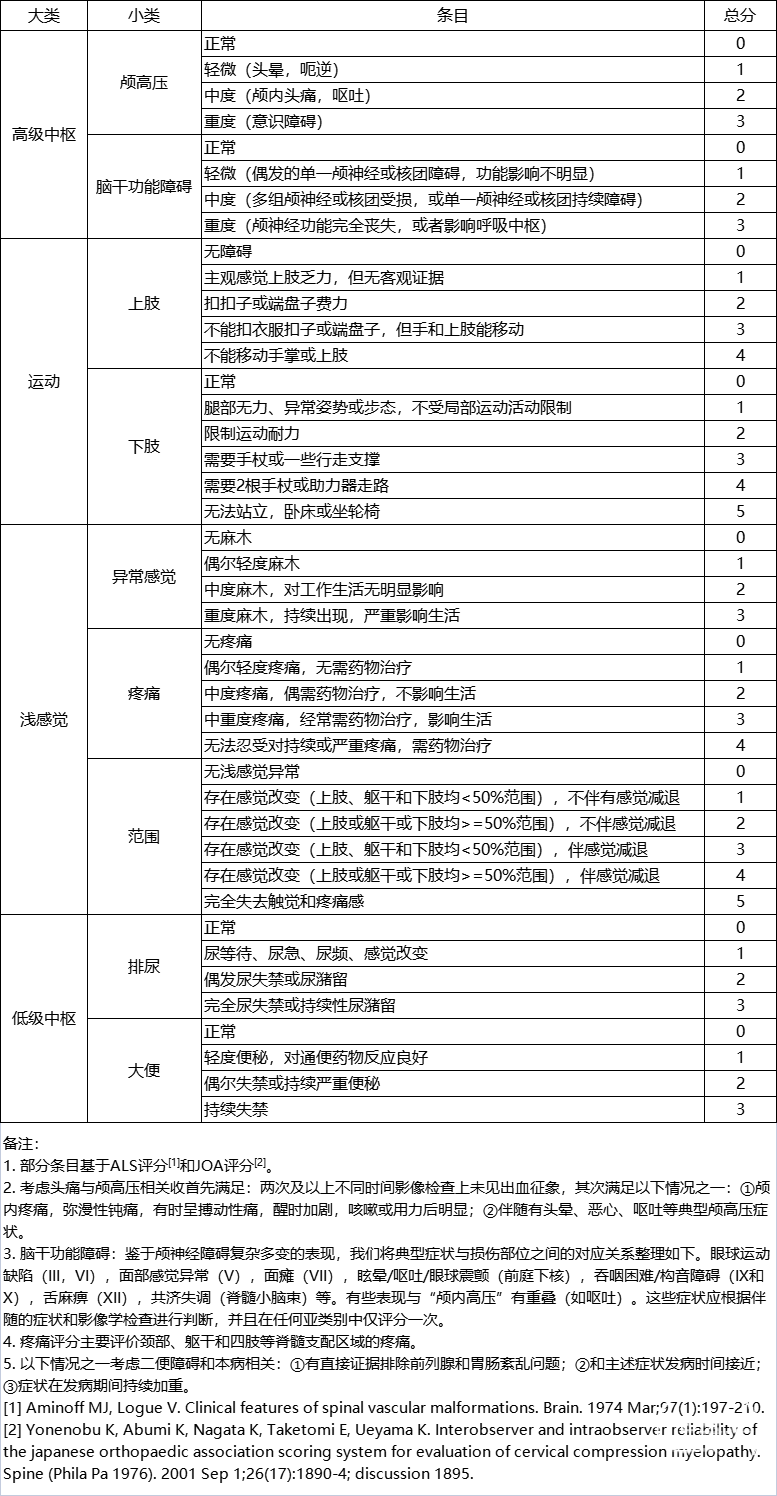 表1. 静脉高压性脊髓病评分量表(Venous Hypertensive Myelopathy Scale,VHMS)