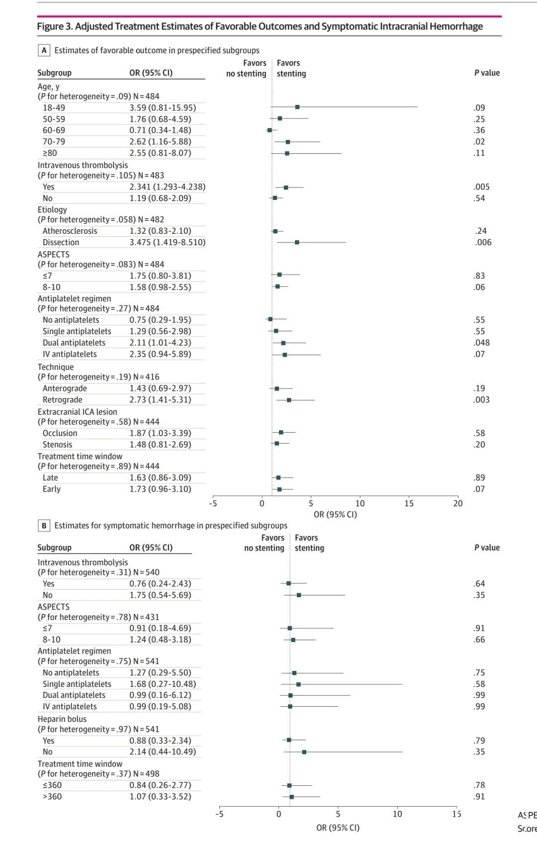 此外,在我们的探索性分析中,我们观察到CAS有利于颈内动脉夹层患者的功能结果。此外,我们还观察到,在使用双重抗血小板药物的患者亚组中,支架置入术与功能结果的相关性更强。这些发现反映了先前发表的Titan(串联闭塞血栓切除术)注册研究的结果,该研究表明,支架置入术与抗血栓药物的使用与90天内血管再通率的增加和更好的功能结果相关.尽管诸如血管内治疗开始的延迟时间或TLS的动脉粥样硬化性质各不相同。