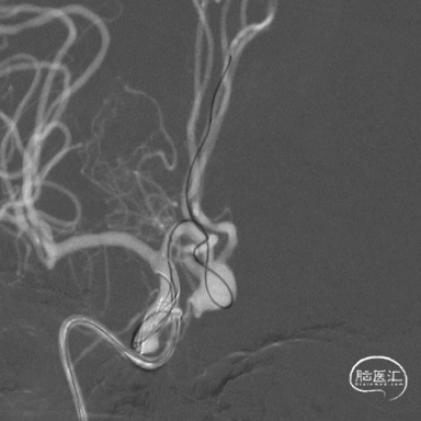 在做“T”型支架时,两条支架释放的先后顺序各有千秋。本病例是先释放“竖”后“横”,这样可以是使“竖”支架尾端不受干扰地充分张开,“横”支架和前者充分贴合。