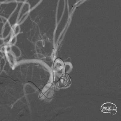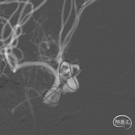 接续填入2枚9mm*30cm弹簧圈,再调整微管位置,送入4mm×12cm、4mm×10cm、3mm×8cm、2mm×6cm弹簧圈。