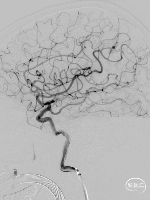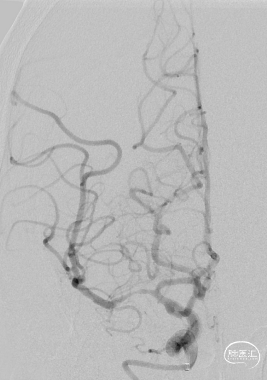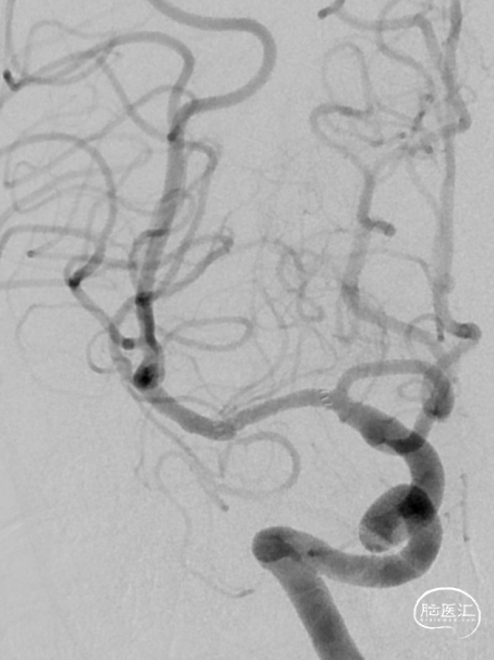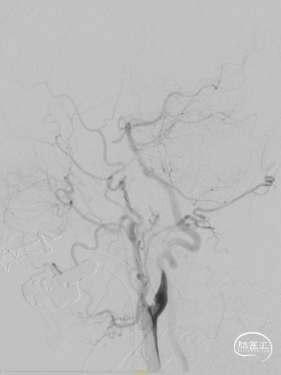 造影见RICA再通,RMCA M1段近端重度狭窄,约90%。