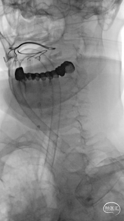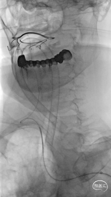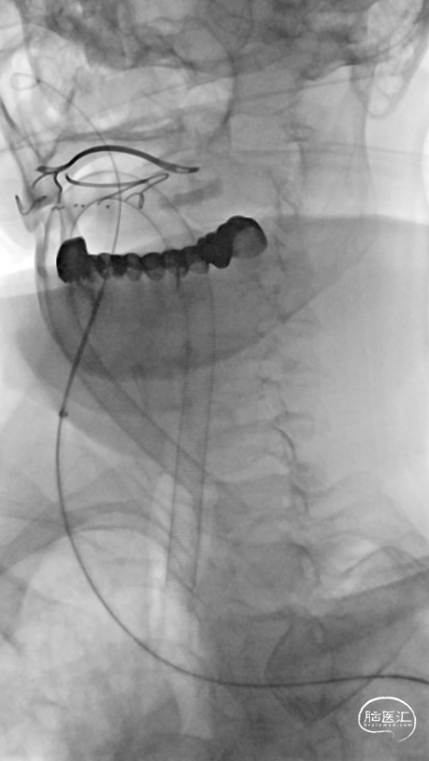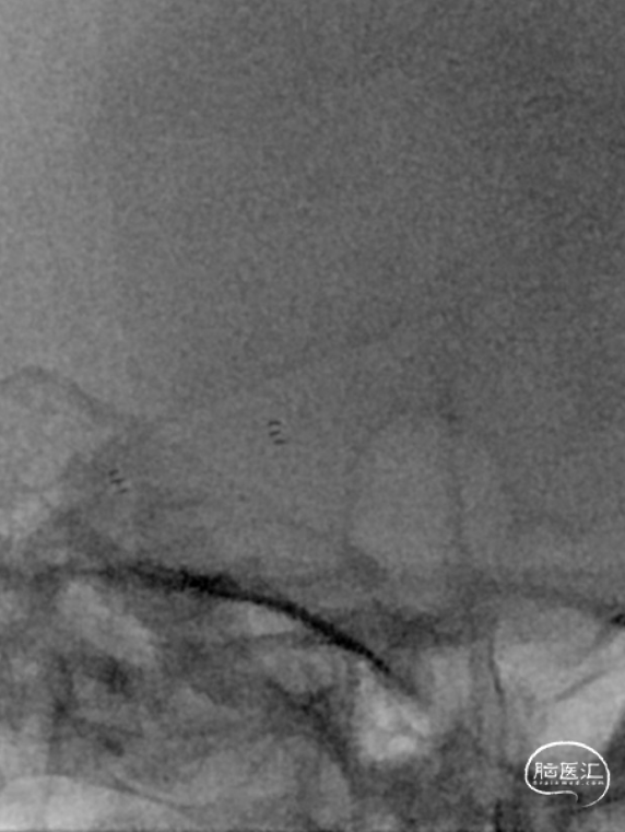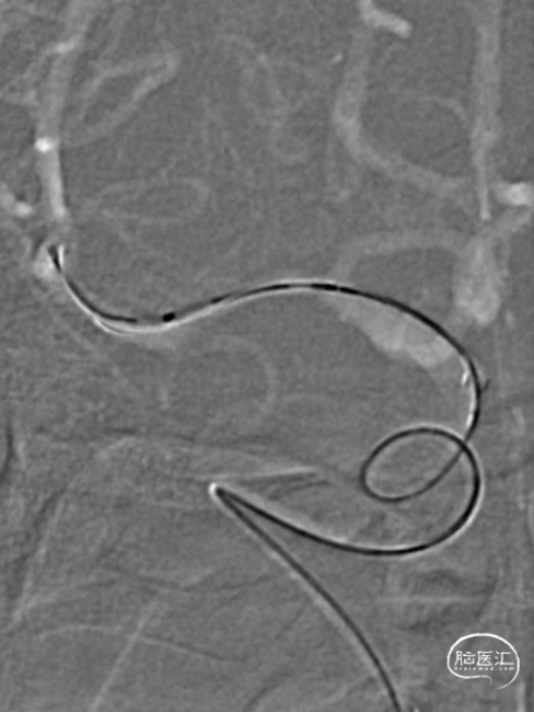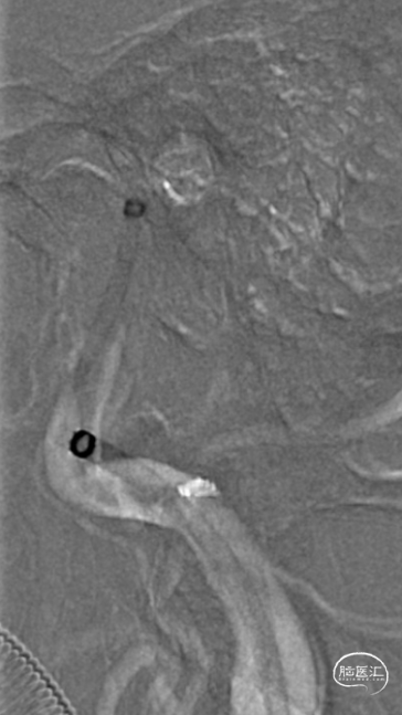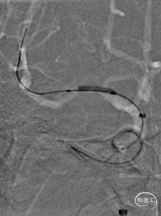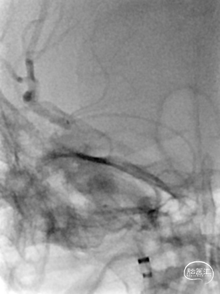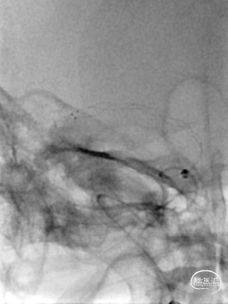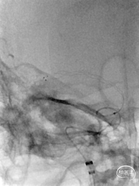 观察10分钟后,狭窄较前加重,局部不规则充盈缺损。术中即刻DynaCT未见造影剂染色。