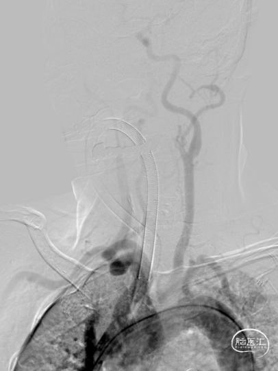 复查造影见支架展开良好,支架内及远端血流通畅,TICI分级3级。术顺,术毕,Proglide缝合术口。