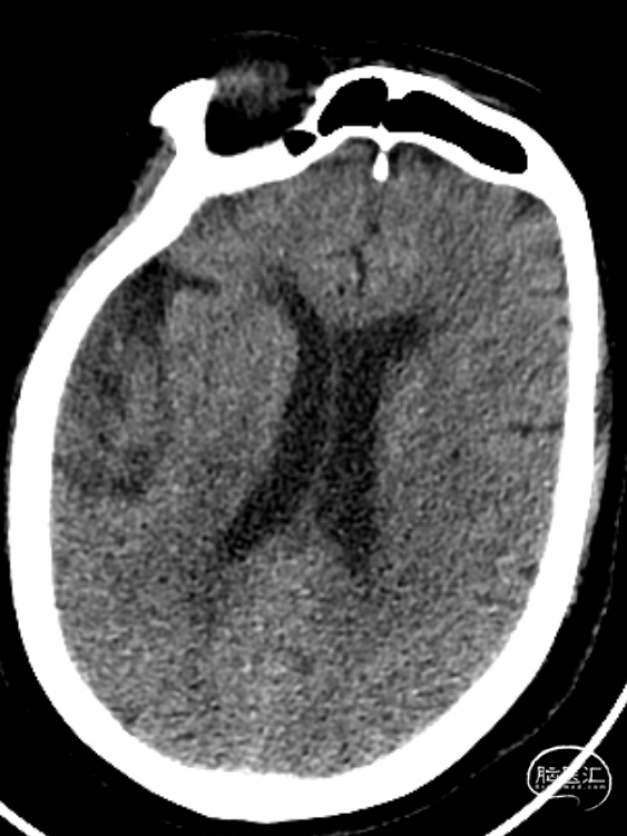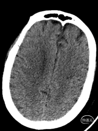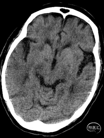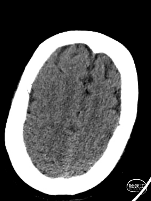 查体:T:36.8℃;P:20次/分;R:81次/分;BP:155/116mmHg。神经系统查体:神志嗜睡,言语含糊,双侧瞳孔等大等圆,直径3mm,双眼向右侧凝视,对光反射灵敏,左侧鼻唇沟浅,伸舌偏左,四肢肌张力正常,右侧可抬举,肌力查体欠合作,左上肢0级,左下肢0级,左侧巴氏征阳性;双侧针刺觉欠合作,双侧指鼻、跟膝胫欠合作;颈软,脑膜刺激征阴性。NIHSS评分:18分。
