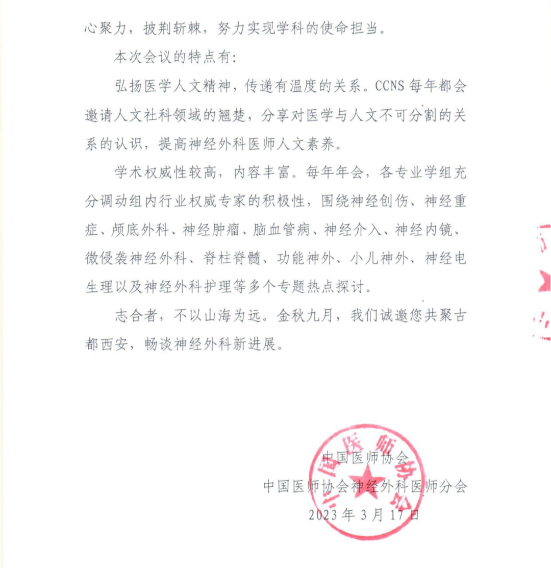尊敬的各位神经外科同道: