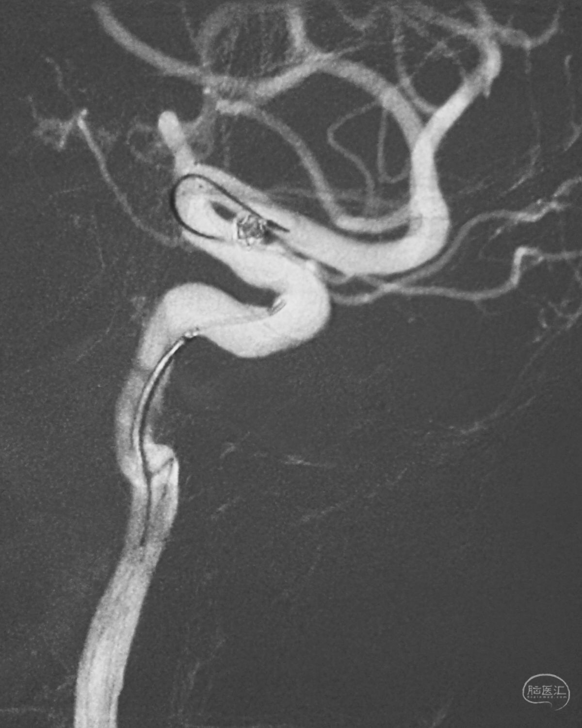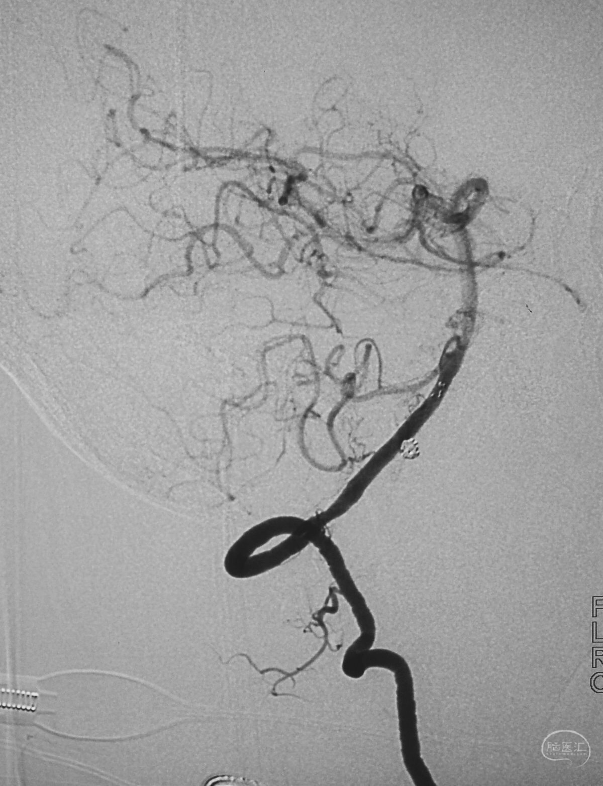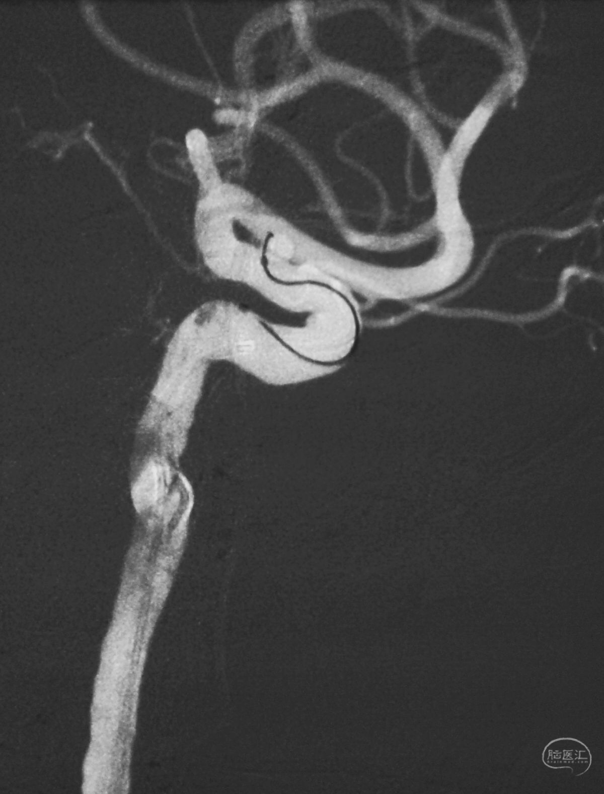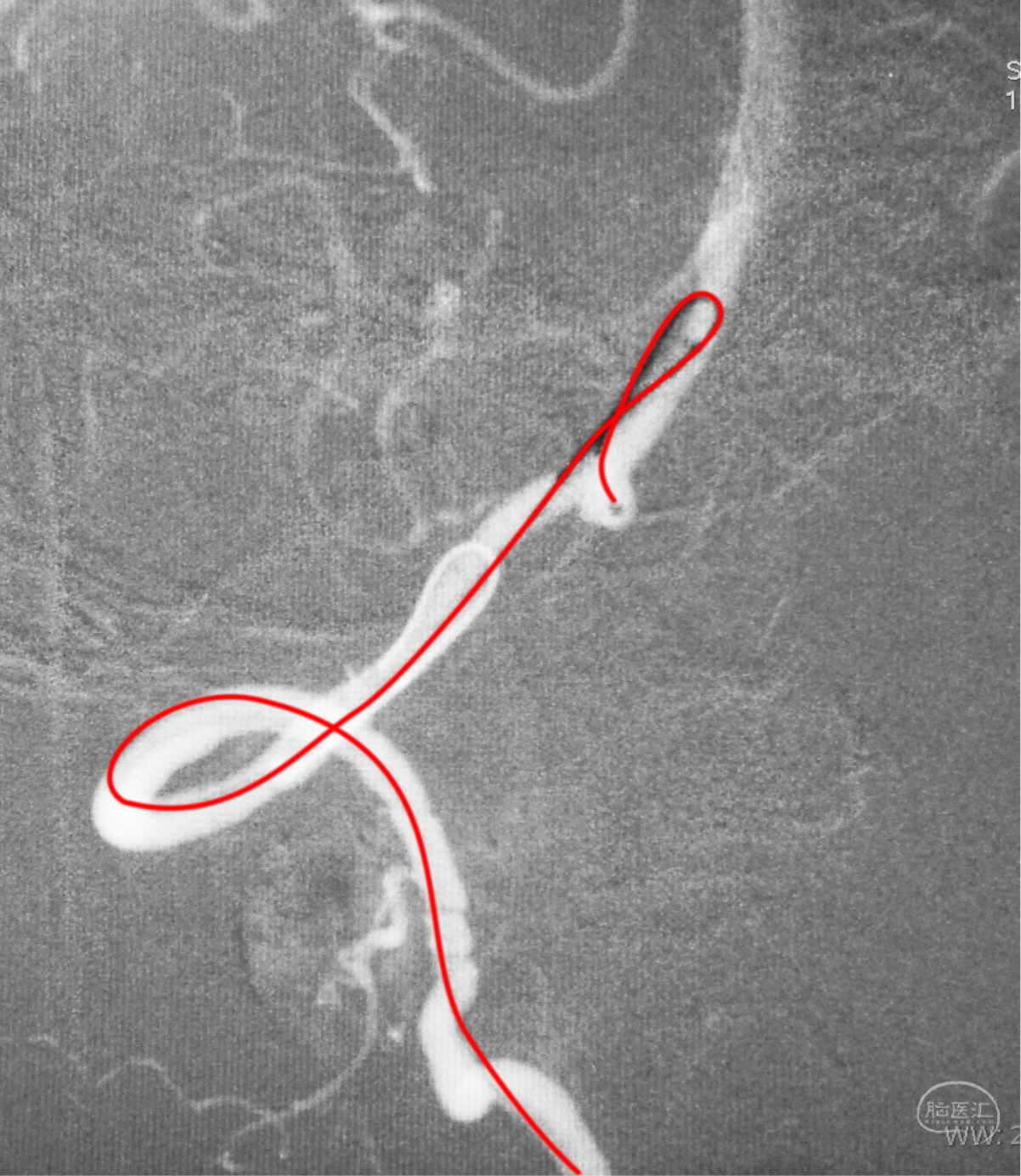 在什么情况下会用到回马枪塑形呢?简单讲,是在不得已的情况下;详细讲,就是在动脉瘤发起角度刁钻,常规塑形的微导管无法超选入瘤腔的情况下。上病例!