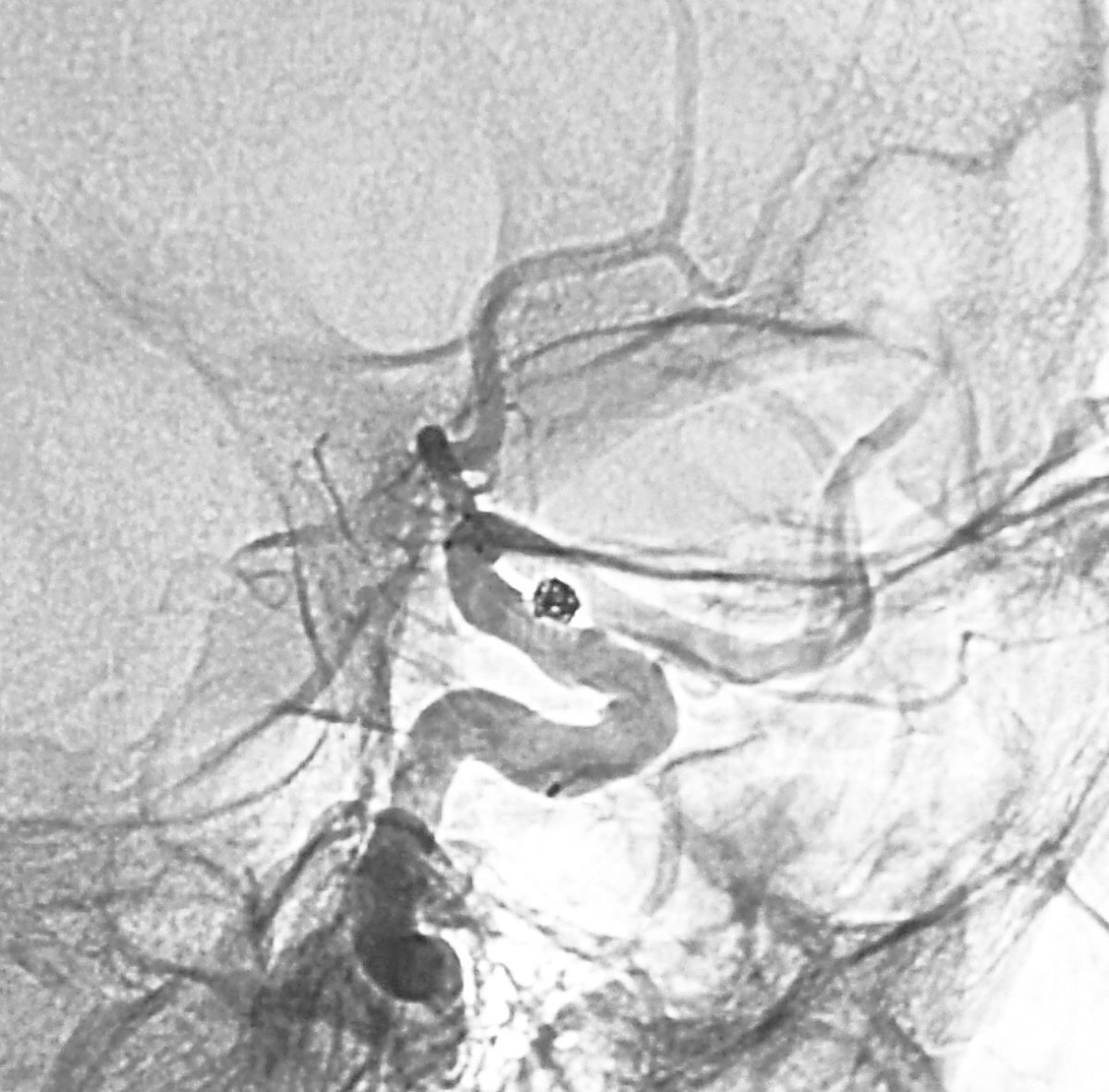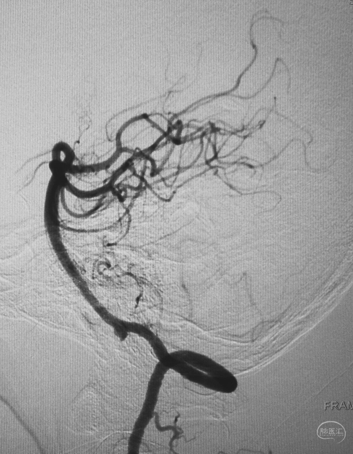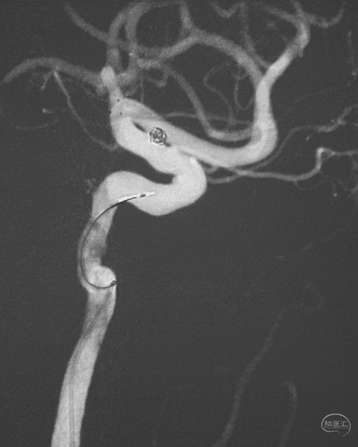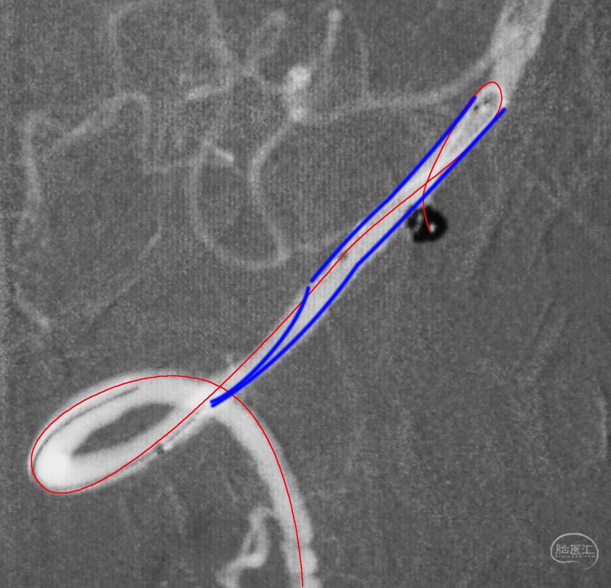 在什么情况下会用到回马枪塑形呢?简单讲,是在不得已的情况下;详细讲,就是在动脉瘤发起角度刁钻,常规塑形的微导管无法超选入瘤腔的情况下。上病例!