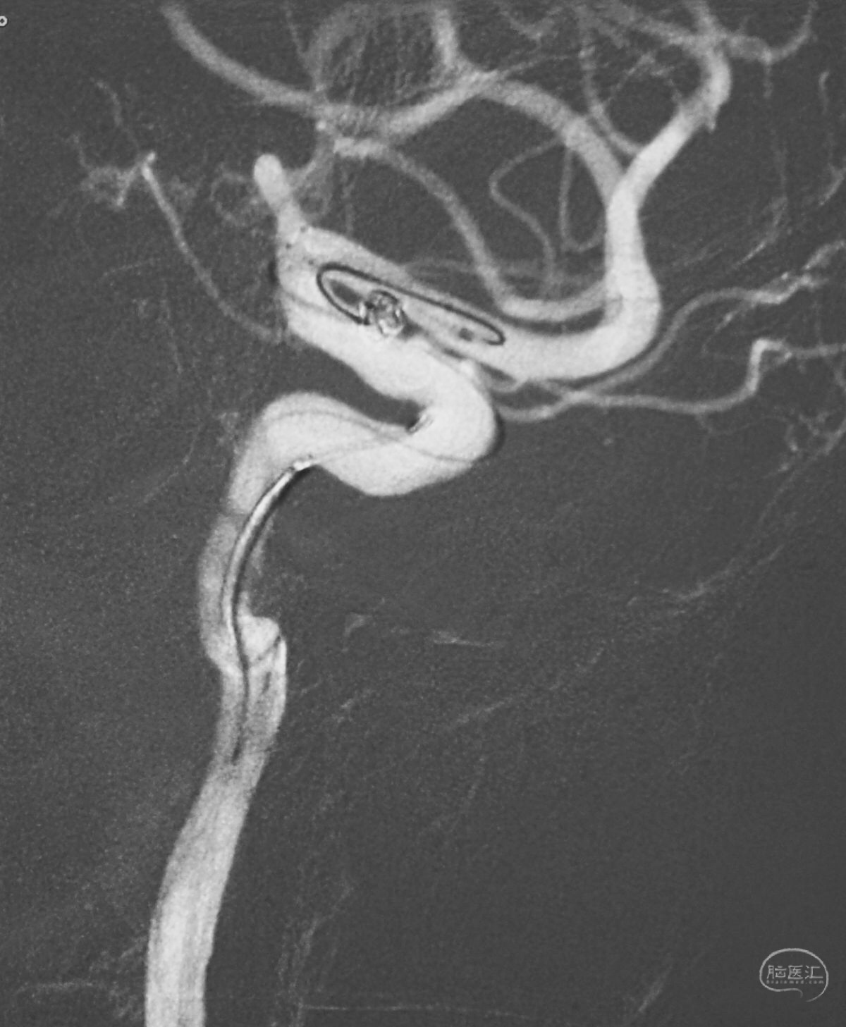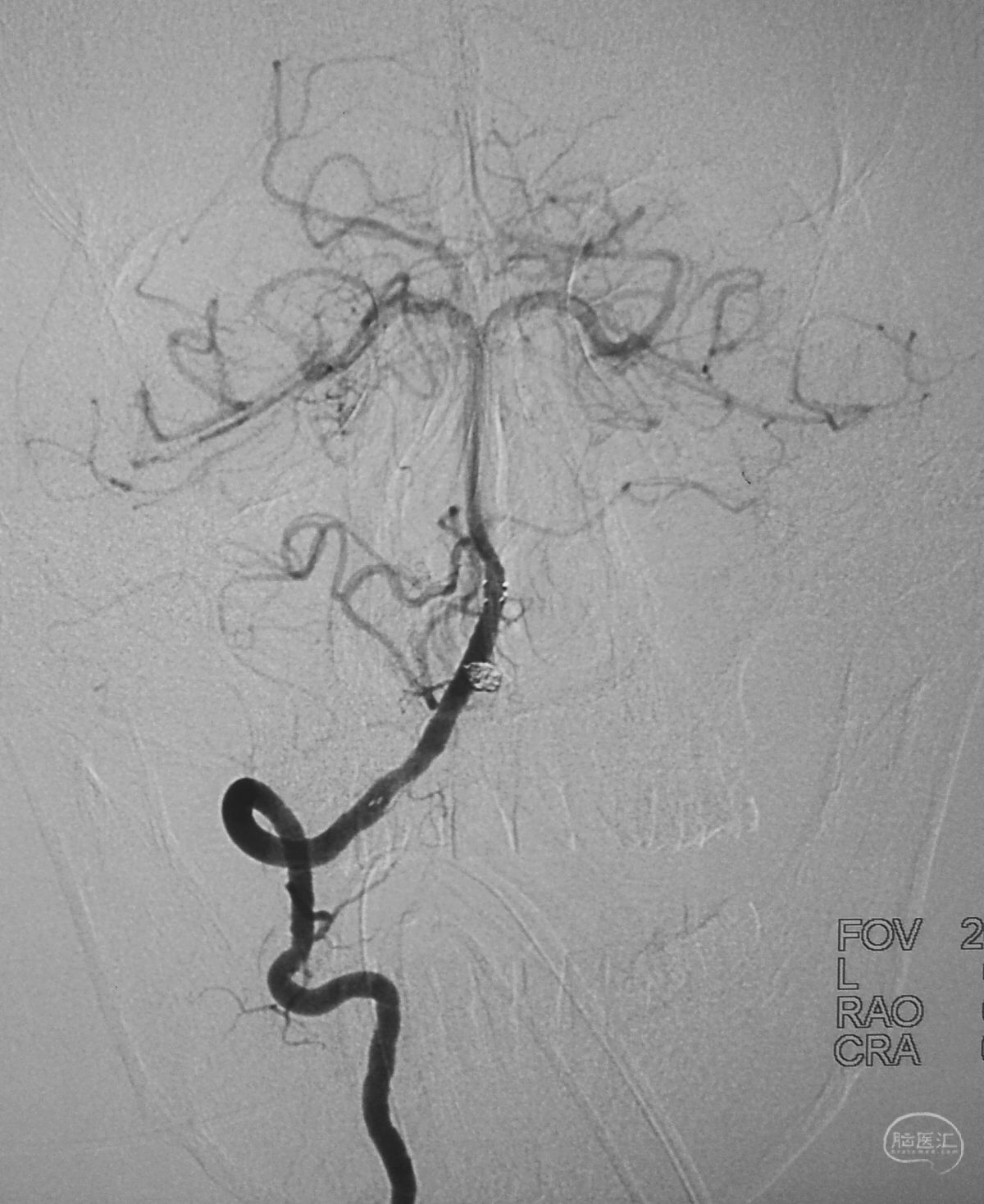 以及正位造影显示动脉瘤完全栓塞,载瘤动脉畅通。