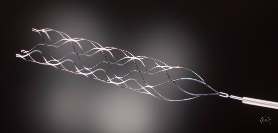 解脱第一枚Solitaire 4×20支架后,套叠置入第二枚Solitaire 4×20支架,置入两枚支架的原因是考虑该瘤是夹层动脉瘤,多支架能够强化血流导向作用,有利于夹层愈合。
