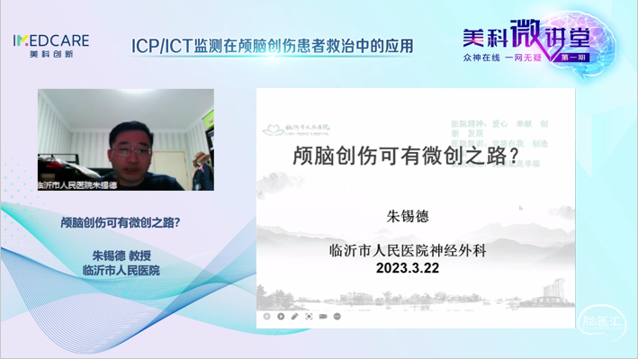 临沂市人民医院朱锡德博士作“颅脑创伤可有微创之路?”专题发言,从外科领域微创手术的概念以及ICP监测专家共识谈起,通过多例临床病例展示,分享了有关ICP监测下微创手术体会:1)ICP监测为手术方式的选择提供参考,为微创手术提供了安全保障;2)对病情变化提前预警判断,对整个治疗过程提供依据;3)ICP管理控制得当,部分患者可避免开颅手术,大大加快康复;4)该开就开,不能迟疑。
