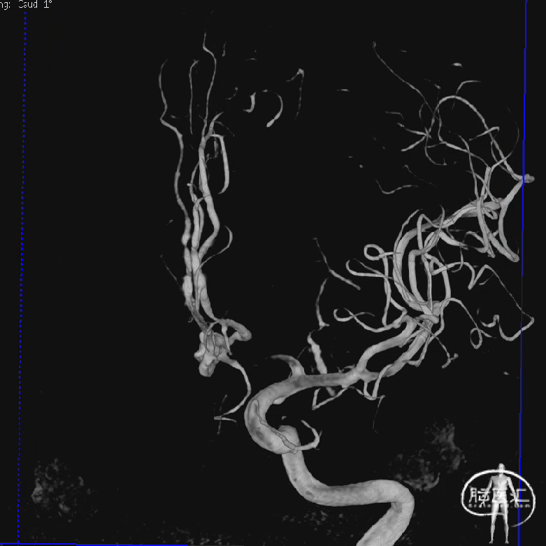 CT平扫:SAH,Fisher 2级;DSA结果:前交通动脉瘤(破裂型),前交通开放,动脉瘤颈约6.5x7.2mm,颈宽约5mm,呈三分叶状。