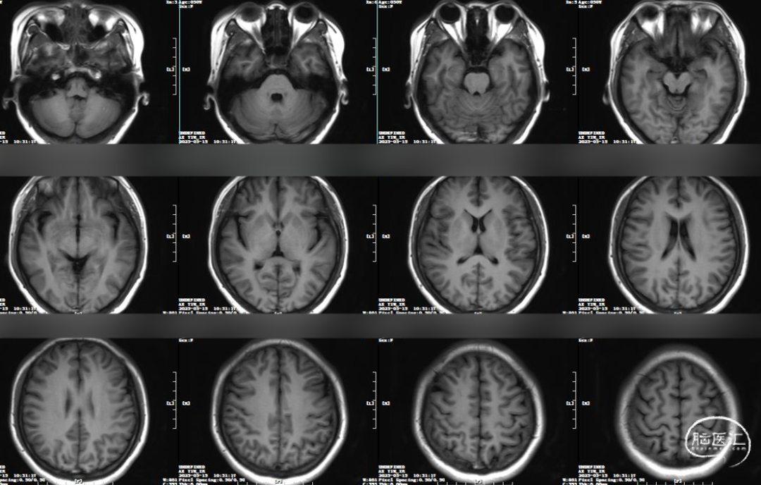 入院查体:身高153cm,体重70kg。神清,对答切题。右眼视力0.1,左眼视力0.5。双眼外展略受限。双耳听力基本对称。口角不歪、伸舌不偏。四肢肌力5级,肌张力正常,腱反射活跃,病理征阴性。脑膜刺激征阴性。