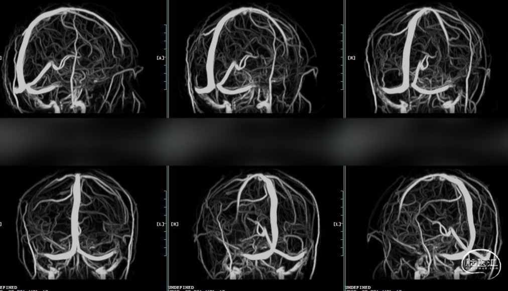 术前MRV:双侧横窦乙状窦交界重度狭窄。