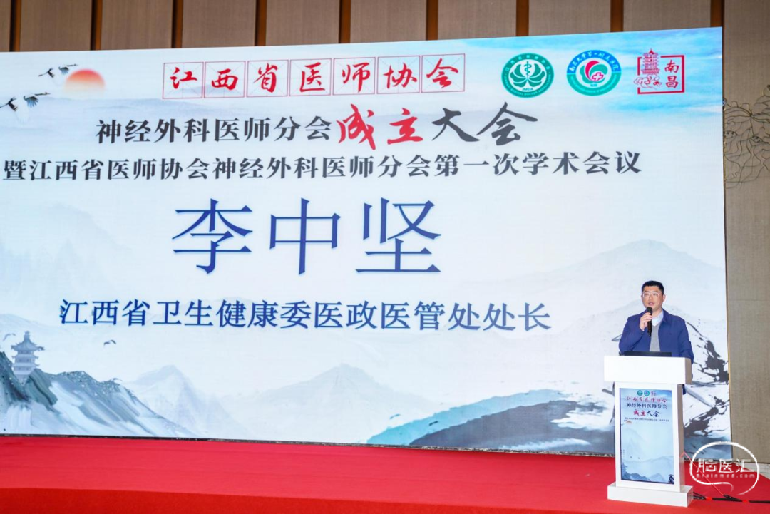 会议邀请到江西省医师协会雷良华会长、江西省医学会神经外科分会候任主委/南昌大学第一附属医院神经外科主任李美华教授、江西省卫健委医政医管处李中坚处长、中国医师协会神经外科分会主任委员/首都医科大学附属北京天坛医院副院长张力伟教授、中国工程院院士/复旦大学附属华山医院周良辅院士共同出席成立大会并致辞。