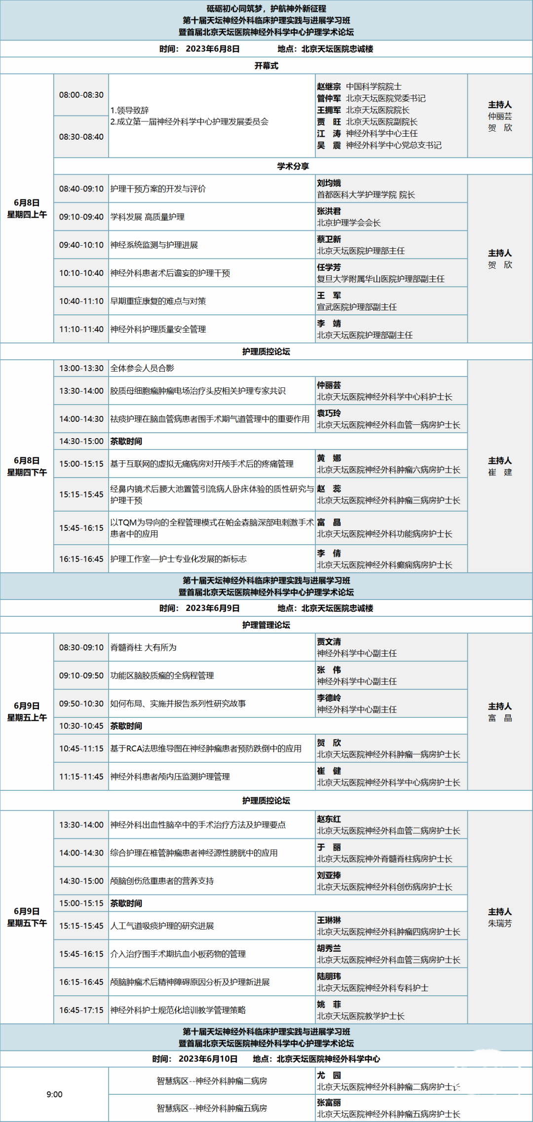 为了推动我国神经外科护理的持续发展,由北京天坛医院神经外科学中心护理组主办的“第十届天坛神经外科临床护理实践与进展学习班暨首届北京天坛医院神经外科学中心护理学术论坛”将于2023年6月8-10日在北京举办。