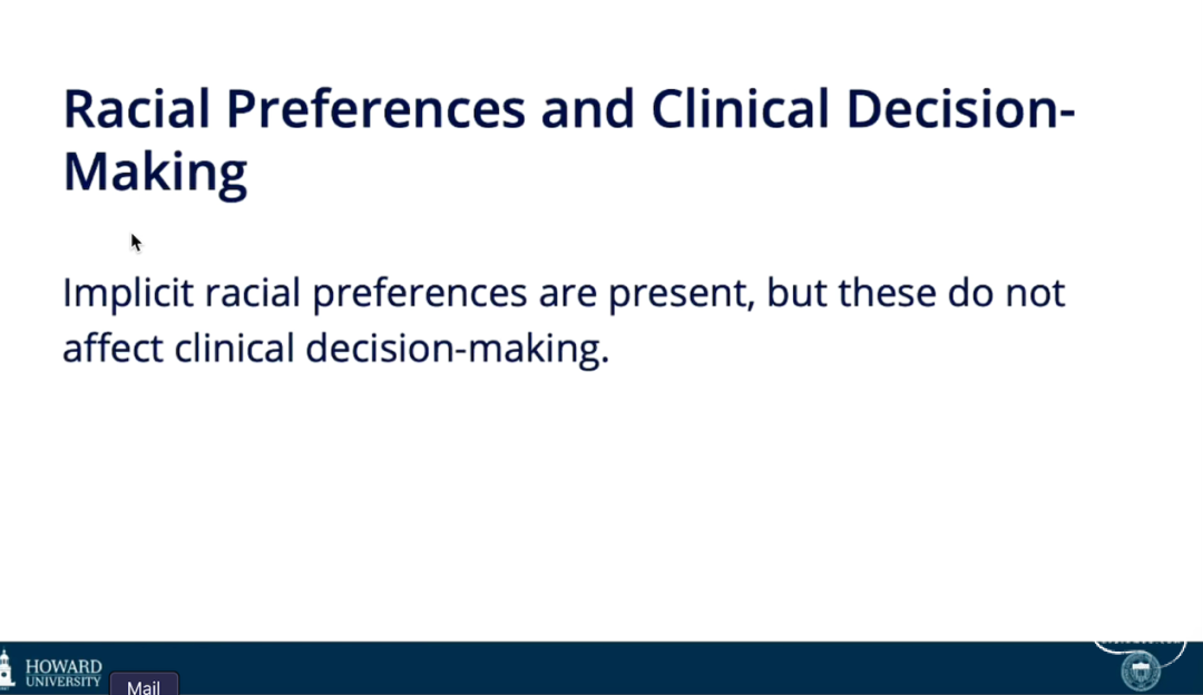 Wayne教授首先介绍了一项在2013和2014级霍普金斯医学院新生中进行的为期2年的前瞻性研究,这项研究旨在明确在这些新生中是否存在潜在的种族和阶层的偏移以及这些偏移是否影响他们对患者的评估。总共211名学生参与了此项研究,其中52%是女性。在参与这种白人和亚裔占绝大多数,黑人占6.4%;大部分人年龄在22到25岁。研究结果表明,这些偏移是客观存在的,但是它并不影响治疗方法的判断。