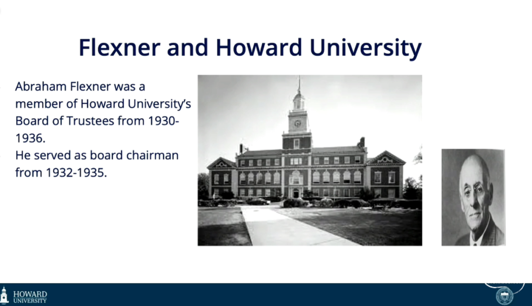 弗勒斯纳报告(Flexner Report)在美国近代医学教育改革中发挥着至关重要的作用,他本人在1932年到1935年担任Howard University的董事会主席。这个报告对妇女和黑人的医学教育产生了一些影响:女性在医学教育中有减少的趋势;黑人医学教育的学校从7个减少到2个。Howard University不断发展壮大,今天的Howard University有14个学院,6000多名职员,2021年秋季入学的人数超过了12000人。在学术研究上,学校倡导多样性,致力于为为一个学生提供机会,特别值得强调的是学校特别重视学生研究兴趣的培养和职业的追求。此外,Wayne教授还介绍了2022年Wayne教授的招生情况。
