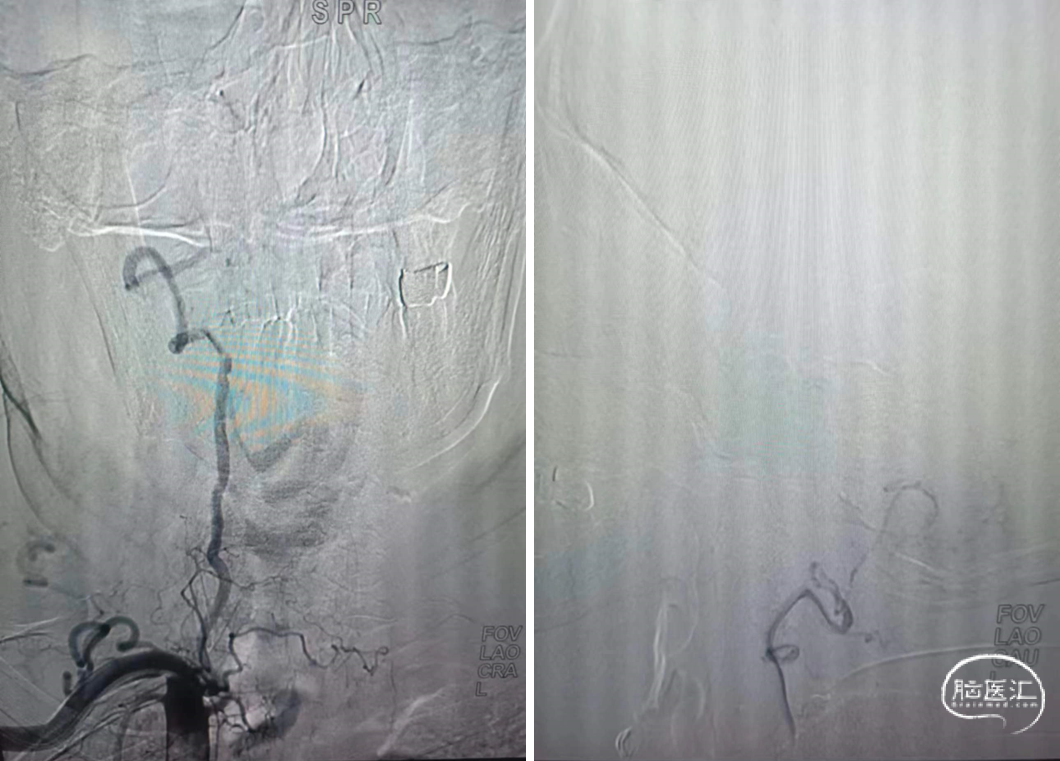 外院DSA(2023.02.09):左侧椎动脉V4段重度狭窄,右侧椎动脉V3段远端闭塞。前循环未见明显异常。