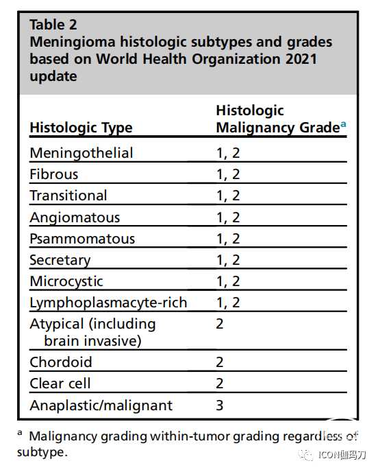 表2基于世界卫生组织2021年更新的脑膜瘤组织学亚型和分级。