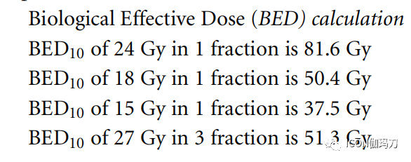27 Gy,3次分割照射的BED10为51.3 Gy