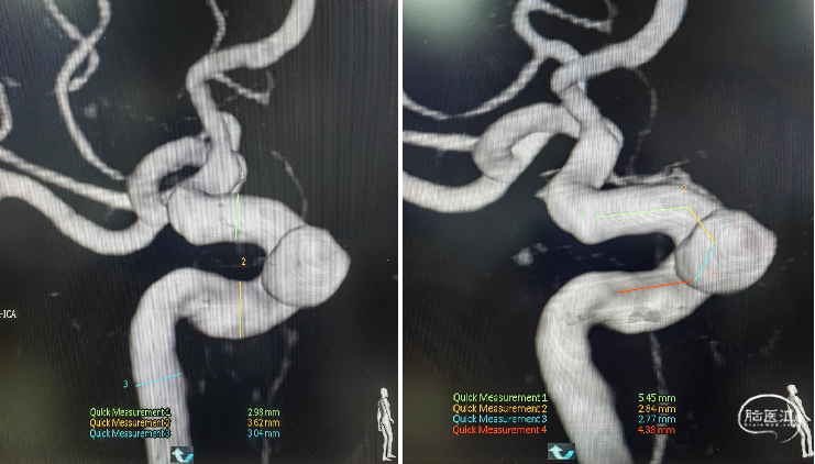 该病例就单纯治疗动脉瘤角度不属于难度特别大的手术,但值得注意的是,除床突段动脉瘤外,后交通漏斗已经形成小动脉瘤,那么就需要考虑需要将床突段动脉瘤与后交通漏斗应用血流导向装置一同覆盖。这就需要血流导向装置释放时的定位一定要精准,既不能释放后不必要的覆盖脉络膜动脉又要覆盖小凸起部。