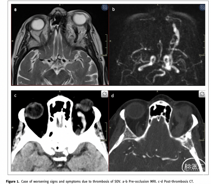 图1. 眼上静脉闭塞导致症状恶化加重的典型病例