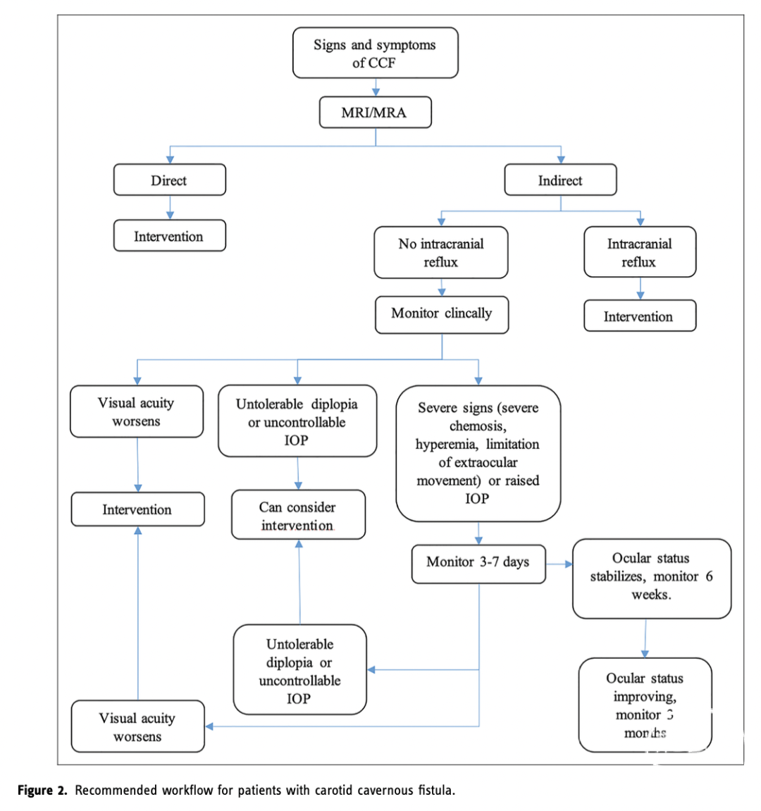 海绵窦硬脑膜动静脉瘘(CSDAVF)是一种罕见动静脉分流,可分为直接(颈内动脉和海绵窦之间的直接连通引起的高流量瘘,CCF)或间接(称为海绵窦-硬脑膜动静脉瘘,颈内动脉和/或颈外动脉分支与海绵窦之间的瘘,CSDAVF)。对于直接CCF,血管内介入干预已成共识。对于CSDAVF,可以通过血管内介入治疗,也可以通过观察保守治疗,60%的病例可以自愈。本研究目的是描述这种情况的临床和放射学特征,提供一个临床管理流程来指导这些患者的管理。荷兰阿姆斯特丹大学医学中心眼科的Roy Tan等对海绵窦硬脑膜动静脉瘘的临床与影像学特征进行了研究,结果发表在2023年3月的《Interv Neuroradiol》。