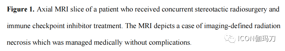 使用ICI与发生RN的风险增加相关。图1展示了1例患单个额顶叶脑转移的患者的轴位MRI图像,该患者同步接受了SRS和ICI,之后发生了影像学定义的RN。ICI已被证明可增加组织内CD8+T细胞的浓度,这可能与历史上被归类为RN的MRI表现相关,但可能代表TRIC,因为这两种治疗之间的协同作用增强了抗肿瘤免疫。因此,TRIC在历史上被归类为RN,其存在可能作为ICI和SRS反应增强的影像学标志物。