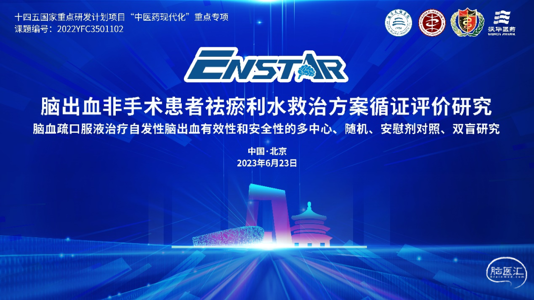 2023年6月23日,脑血疏口服液治疗自发性脑出血有效性和安全性的多中心、随机、安慰剂对照、双盲研究启动会,在中国卒中学会第九届学术年会暨天坛脑血管病会议2023(CSA&TISC)上顺利召开。本课题为“十四五”国家重点研发计划项目“中医药现代化”重点专项,脑卒中早期中西医精准防治关键技术与全链条诊疗方案研究(2022YFC3501102)。首都医科大学附属北京天坛医院为牵头单位,青岛大学附属医院为合作单位,共确定26家分中心参与本研究。启动会在首都医科大学附属北京天坛医院神经病学中心赵性泉教授致词中正式开始,赵教授回顾了从十二五、十三五在脑血疏口服液临床价值的深入探索,感谢众多分中心研究者与天坛医院的付出和努力,最终才能迎来今天的启动会。企业代表、山东沃华医药副董事长赵彩霞女士,对企业愿景、传统医学推广、中成药临床价值深入研究等方面进行了介绍,并强调一定秉承科学、严谨的科研态度,与各中心一同高质高效的推进科研。随后,北京中医药大学东直门医院高颖教授,就“十四五”国家重点研发计划项目“中医药现代化”重点专项进行了介绍。由本课题负责人、首都医科大学附属北京天坛医院鞠奕教授,对脑出血非手术患者祛瘀利水救治方案循证评价研究—脑血疏口服液治疗自发性脑出血有效性和安全性的多中心、随机、安慰剂对照、双盲研究进行了介绍。专题报告报告一01“十四五”国家重点研发计划项目“中医药现代化”重点专项-脑卒中早期中西医精准防治关键技术与全链条诊疗方案研究(2022YFC3501100)项目总体方案。北京中医药大学东直门医院、“十四五”国家重点研发计划项目“中医药现代化”重点专项—脑卒中早期中西医精准防治关键技术与全链条诊疗方案研究项目牵头专家高颖教授,对本项目总体方案进行了介绍。高颖教授讲到:我国每年新发脑卒中300余万,是我国致死疾病之首,致残率高达70%以上。而脑出血非手术人群指南缺乏推荐药物是临床亟待解决的难题。从中国国家卒中登记(CNSR)显示,36.3%的脑出血患者应用中医药治疗。虽然近年来,中医药干预措施已进入中国脑卒中相关指南,但仍然缺乏高质量疗效证据,在脑卒中全链条诊疗技术体系中,让中西医优势互补。脑血疏口服液治疗自发性脑出血有效性和安全性的多中心、随机、安慰剂对照、双盲研究作为课题2-脑出血非手术患者祛瘀利水救治方案循证评价研究,探索脑出血非手术患者中西医结合治疗效果。报告二02脑出血非手术患者祛瘀利水救治方案循证评价研究-脑血疏口服液治疗自发性脑出血有效性和安全性的多中心、随机、安慰剂对照、双盲研究。首都医科大学附属北京天坛医院课题负责人鞠奕教授,对本课题进行了介绍,当前临床在脑出血治疗所面临的两大挑战,暨脑出血高死亡率高致残率,目前尚缺乏特殊有效的外科及内科治疗手段和脑出血早期尚缺乏能有效促进血肿吸收、减轻血肿周围水肿的中药药物,而脑血疏口服液在十二五、十三五科研中已经取得不错的成果,而本课题通过科学严谨的研究,拟评估脑血疏口服液联合标准化西医药物治疗的中西医结合治疗方案治疗自发性脑出血非手术患者90天功能预后(mRS≤2分),是一项前瞻性、多中心、随机、双盲、安慰剂对照的临床试验,共计纳入病例数为520例,实验组为脑血疏口服液10ml/次,TID,加规范化西医治疗;对照组为脑血疏口服液模拟剂10ml/次,TID,加规范化西医治疗。疗程均为30天。启动会后,由课题牵头单位、首都医科大学附属北京天坛医院神经病学中心王文娟主任、贾娇坤博士;合作单位青岛大学附属医院李鑫主任;中联立鼎王亚锋博士;国家神经系统疾病临床医学研究中心王安心主任对各中心研究者进行了培训,现场互动讨论热烈,本次科研启动会及培训会顺利召开。声明:脑医汇旗下神外资讯、神介资讯、神内资讯、脑医咨询、AiBrain 所发表内容之知识产权为脑医汇及主办方、原作者等相关权利人所有。投稿邮箱:NAOYIHUI@163.com 未经许可,禁止进行转载、摘编、复制、裁切、录制等。经许可授权使用,亦须注明来源。欢迎转发、分享。