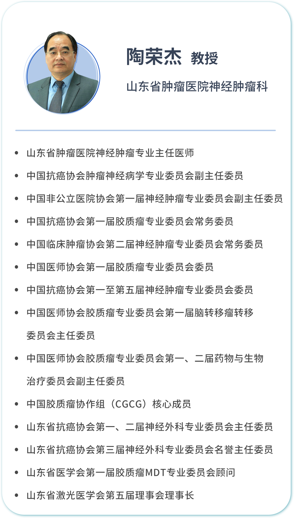 在专家诊室里,陶荣杰教授面对患者总是保持着笑意盈盈的和蔼模样。这样的笑颜,既是对病情复杂的胶质瘤患者及家属的极大宽慰,也显示着强大专业背景下十足的底气,更给予患者继续与胶质瘤抗争的信心。