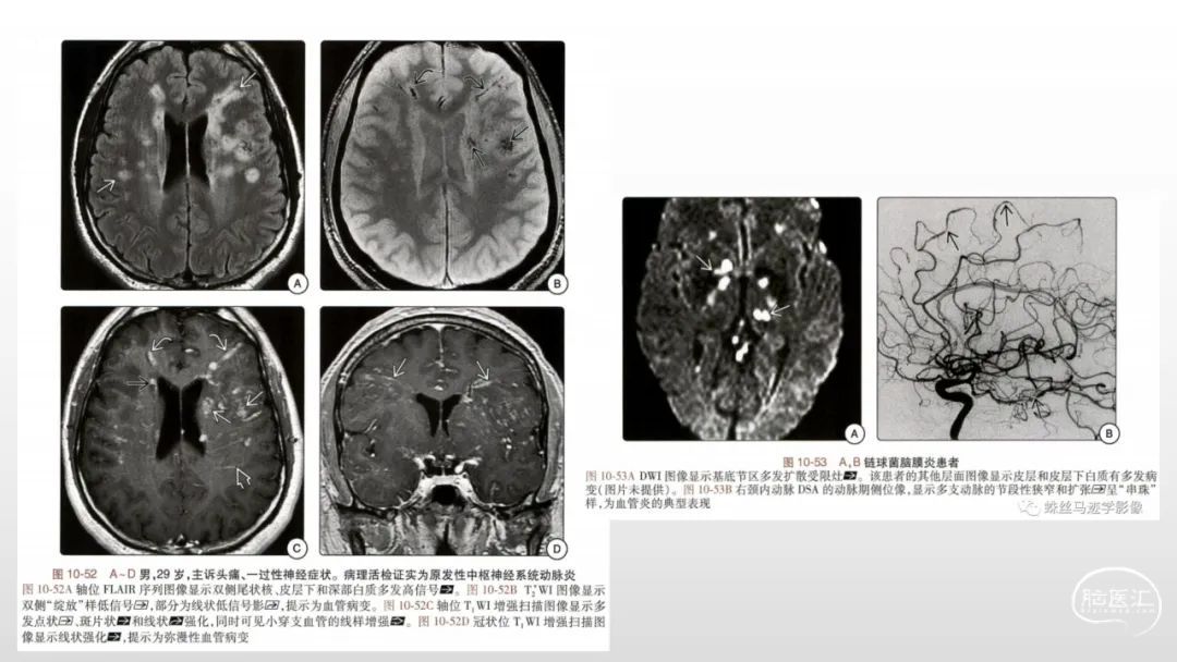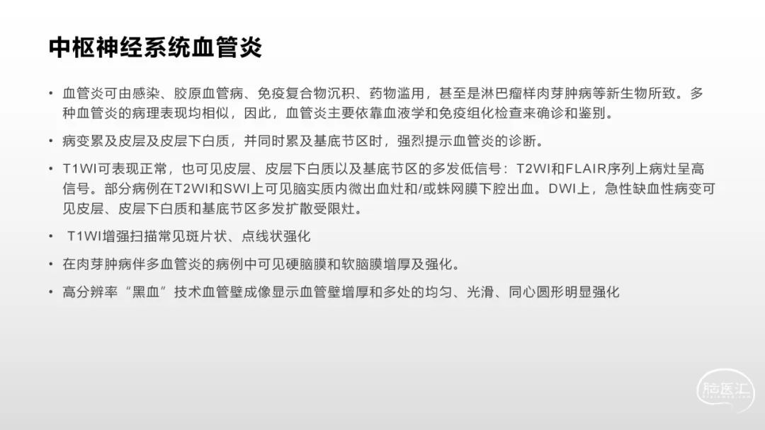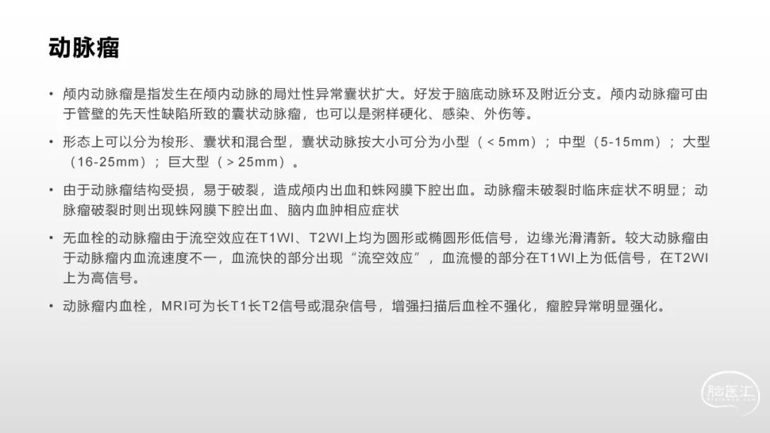 本文来源于公众号:蛛丝马迹学影像◆ 颅脑影像诊断基础知识讲座:《脑血管病》之目录和脑血管解剖◆ 颅脑影像诊断基础知识讲座:《脑血管病》之脑小血管病和急性缺血性脑血管病声明:脑医汇旗下神外资讯、神介资讯、神内资讯、脑医咨询、Ai Brain 所发表内容之知识产权为脑医汇及主办方、原作者等相关权利人所有。投稿邮箱:NAOYIHUI@163.com 未经许可,禁止进行转载、摘编、复制、裁切、录制等。经许可授权使用,亦须注明来源。欢迎转发、分享。