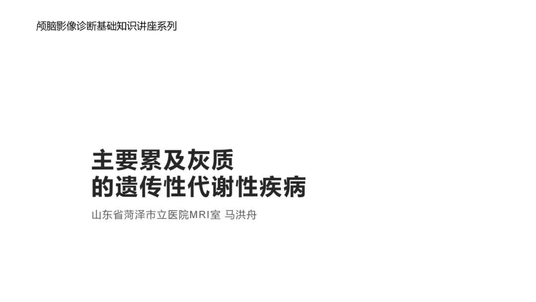 颅脑影像诊断基础知识讲座:主要累及灰质的遗传性代谢性疾病