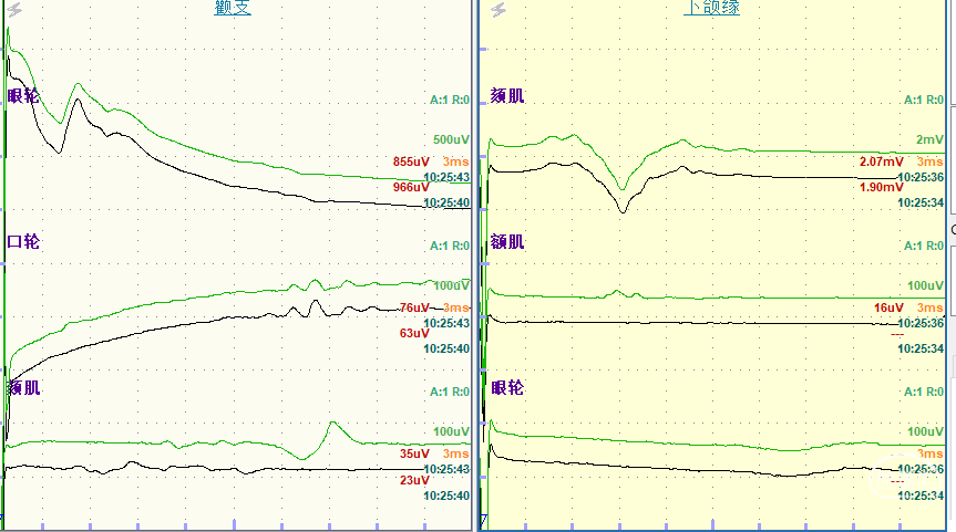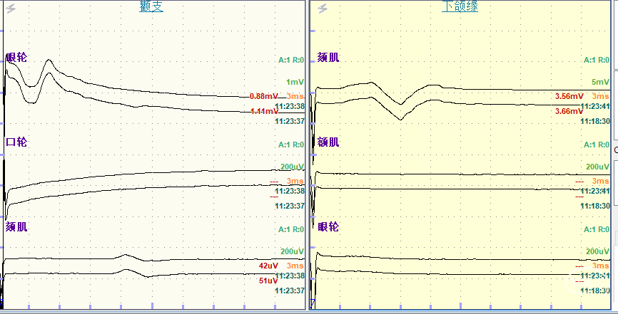 将静脉与面神经全面隔绝后,仅眼轮匝肌LSR存在