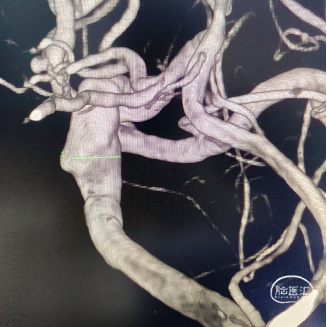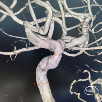左侧颈内动脉眼动脉段动脉瘤:动脉瘤约为6.21*5.11mm(H*W),瘤颈宽约为4.72mm。