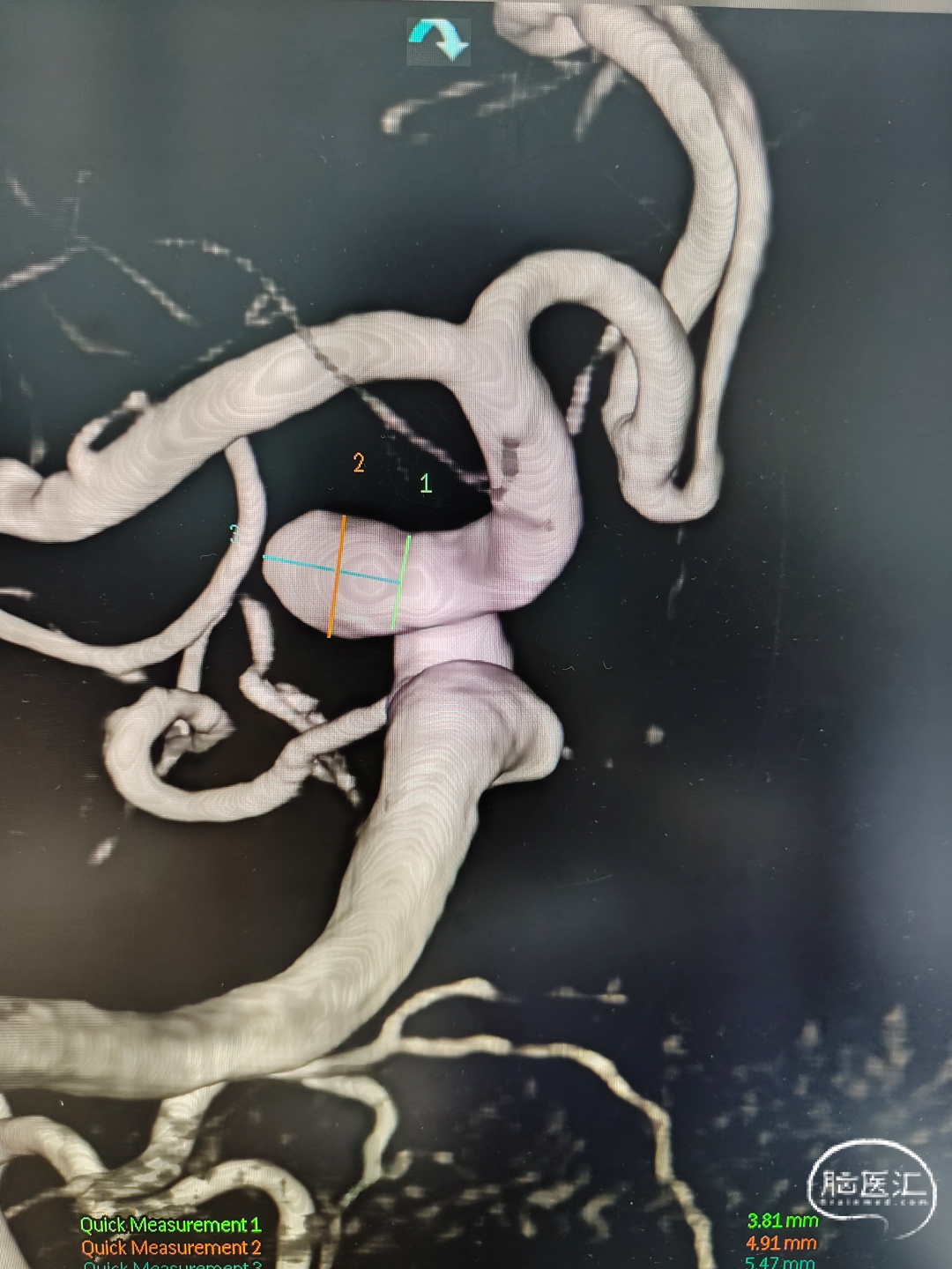 载瘤动脉远端锚定点直径:3.54mm