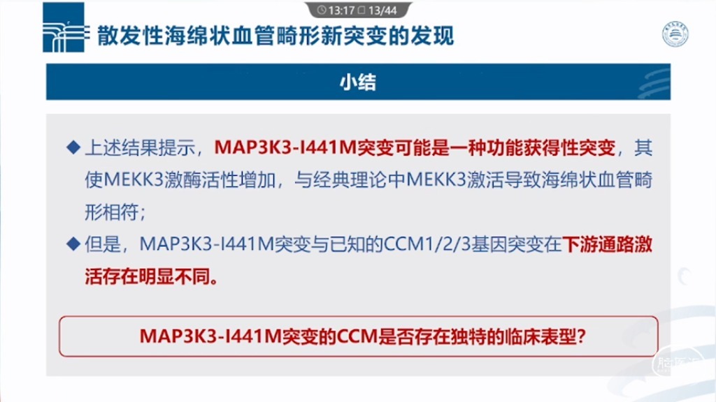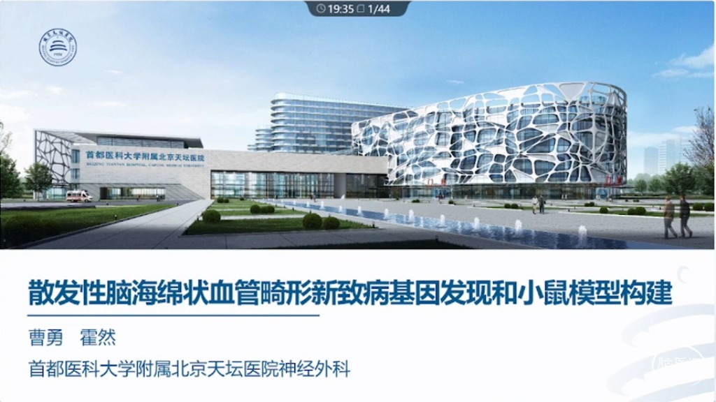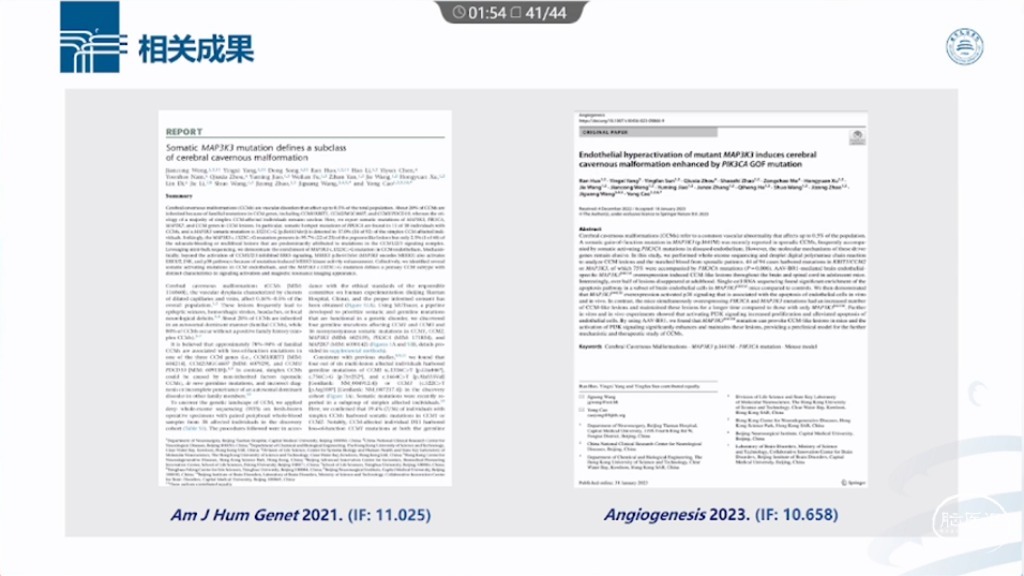 曹勇教授:脑海绵状血管畸形新突变基因发现和小鼠模型构建