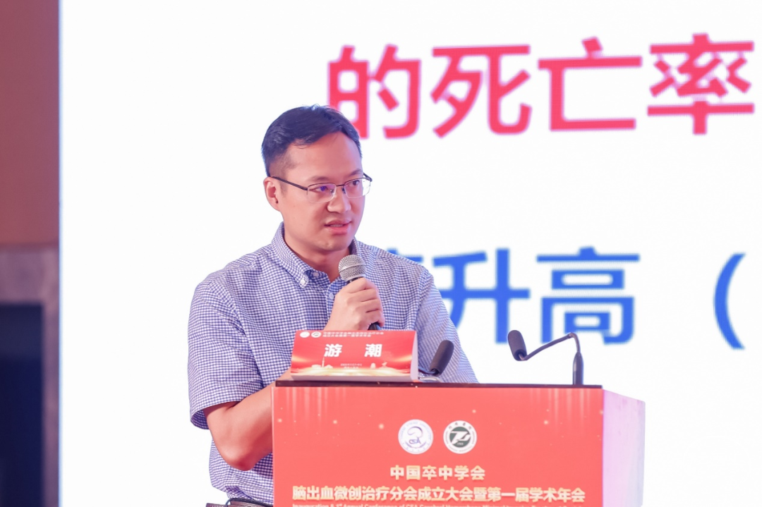 四川大学华西医院神经外科学科主任游潮教授因故不能亲临会场,委托中国卒中学会脑出血微创治疗分会委员兼秘书、华西医院神经外科陶传元副教授从“欧美外科治疗现状”“中国外科治疗现状”“问题与思索”“何去何从 路在何方”4个方面主题分享了《高血压脑出血外科治疗现状及问题》。