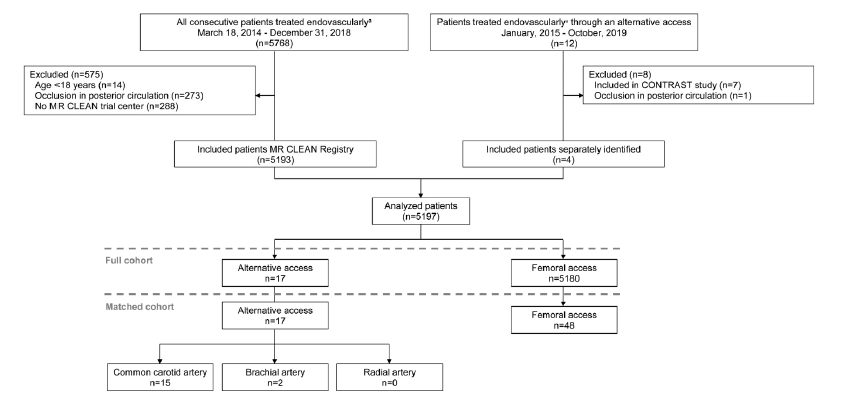 最后作者指出,在荷兰通过替代动入通路进行EVT治疗的情况很少,并且似乎与标准股动脉通路相比,其结果较差。未来,应比较在股动脉通路失败后,通过替代动脉入路进行EVT治疗的附加价值。