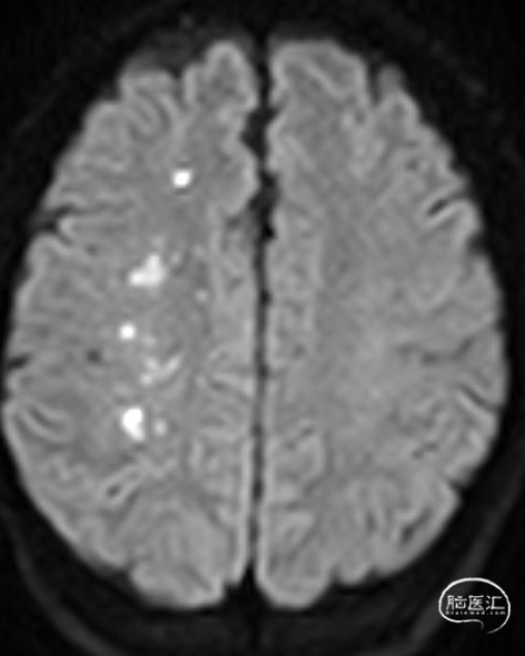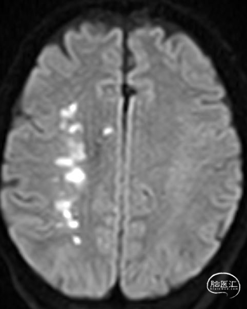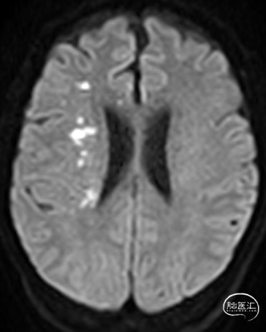 1、脑梗死(右侧额顶叶和右侧侧脑室后角,其他原因型)