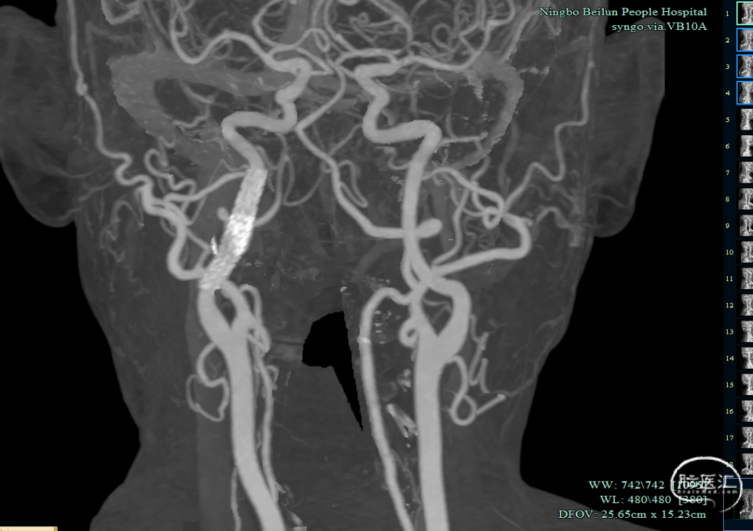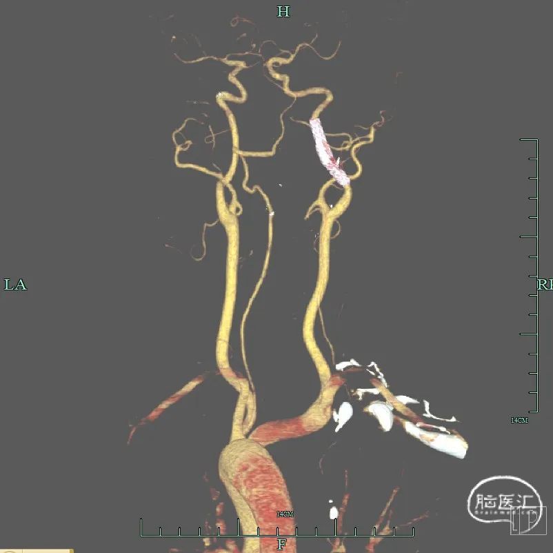 术后三个月随访:mRS 0分,颈部血管CTA显示支架形态良好。