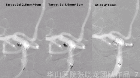 为保护后交通动脉,Atlas支架释放时可采用“神龙摆尾”技术。当然也可以选择Solitaire支架来保护后交通动脉。