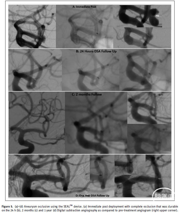 SEAL™装置的部署和植入在技术上是可行的、安全的,并且很好地符合复杂破裂动脉瘤的不规则形状。植入后立即观察到动脉瘤完全闭塞。重要的是,术后1年的血管造影随访显示没有安全问题。