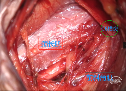 免去暴露锁骨下动脉和椎动脉开口,事情简单了很多。我们只用20min就找到了椎动脉。不熟悉解剖的术者,在这一步很可能会被其他纵向走行的动脉迷惑,主要是甲状腺下动脉和颈升动脉。