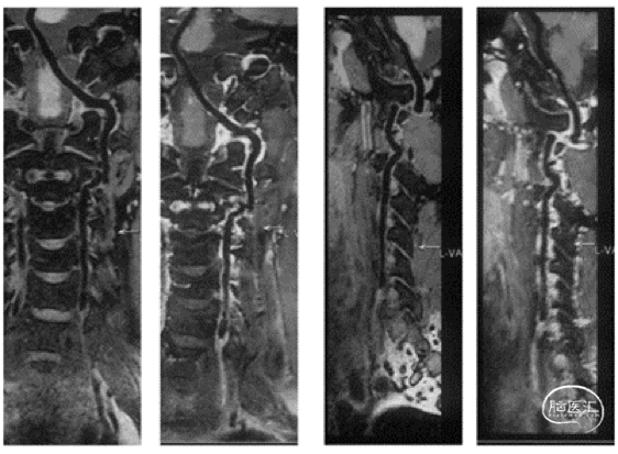 HR-MRI所见:左椎动脉闭塞段最远到C6横突孔附近。闭塞段近段显示不清,疑似不均匀强化,考虑为斑块;远段信号均匀,平扫为等信号,增强后可见强化,考虑为机化的血栓。