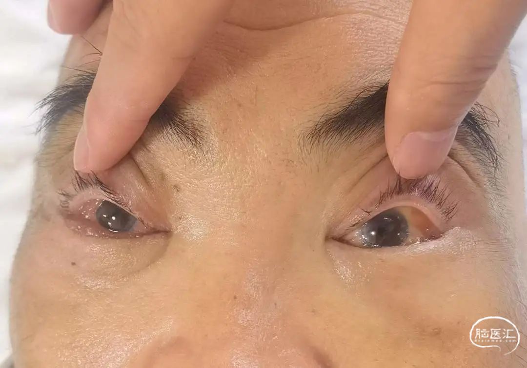 患者男性,54岁,外伤后双侧眼突伴视物模糊21天。既往体健。