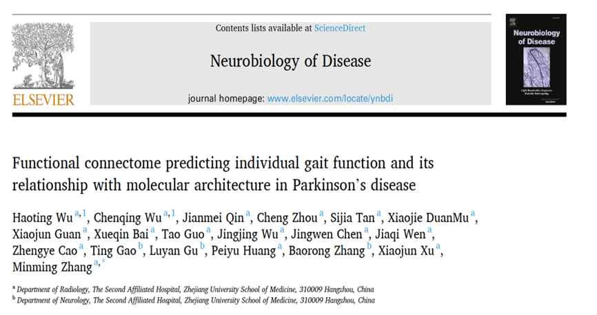 [Wu H, Wu C, Qin J, Zhou C, Tan S, DuanMu X, Guan X, Bai X, Guo T, Wu J, Chen J, Wen J, Cao Z, Gao T, Gu L, Huang P, Zhang B, Xu X, Zhang M. Functional connectome predicting individual gait function and its relationship with molecular architecture in Parkinson's disease. Neurobiol Dis. 2023 Aug;184:106216. doi: 10.1016/j.nbd.2023.106216. Epub 2023 Jun 28. PMID: 37385459.]